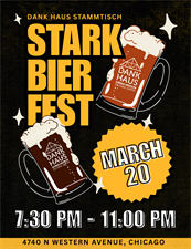 Join us for Stark Bierfest Stammtisch on Friday, March 20 from 7:30–11:00 PM as we celebrate a cherished Bavarian tradition.
